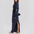 Navy Blue High - Neck Maxi Dress with Ruffled Cuffs