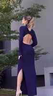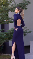 Navy Blue High - neck Ribbed Maxi Dress