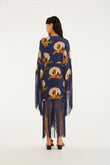 Navy Blue Printed Fringe - Trimmed Wrap Dress