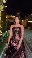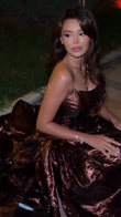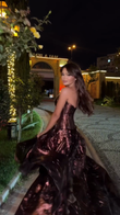 It's ideal for red carpet events, galas, or high-end weddings. Accessorizing with simple, elegant jewelry, such as a delicate necklace, elevates the gown's grandeur without sacrificing its luxurious feel. The flowing skirt adds a touch of fluidity and elegance.