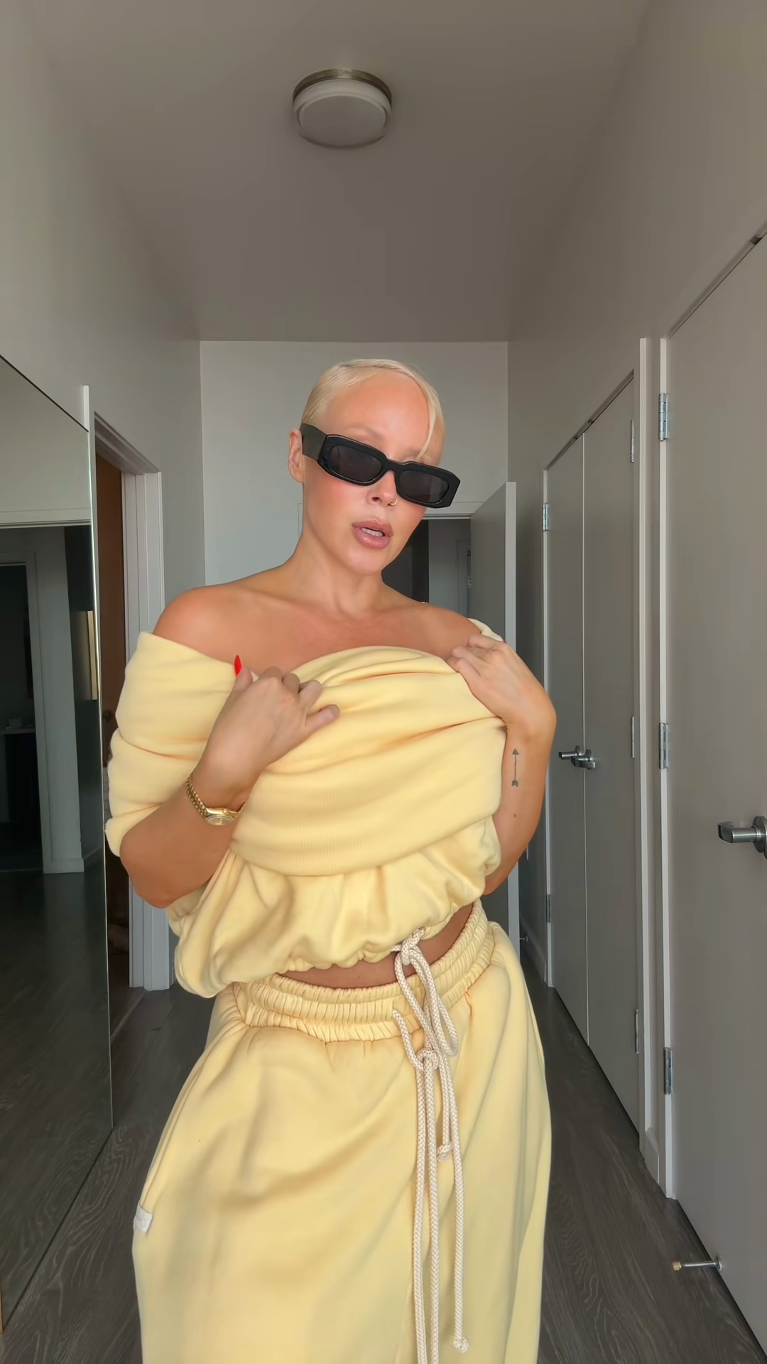 Off the Shoulder Cropped Top and Drawstring Joggers Set