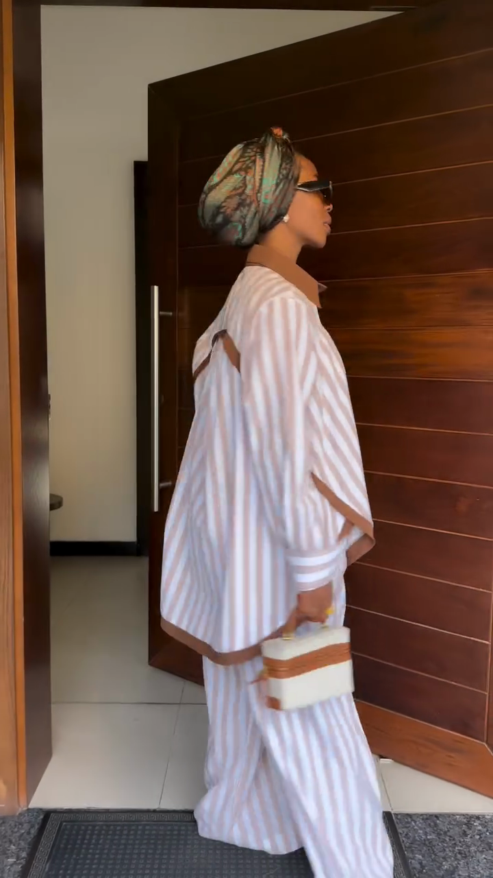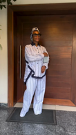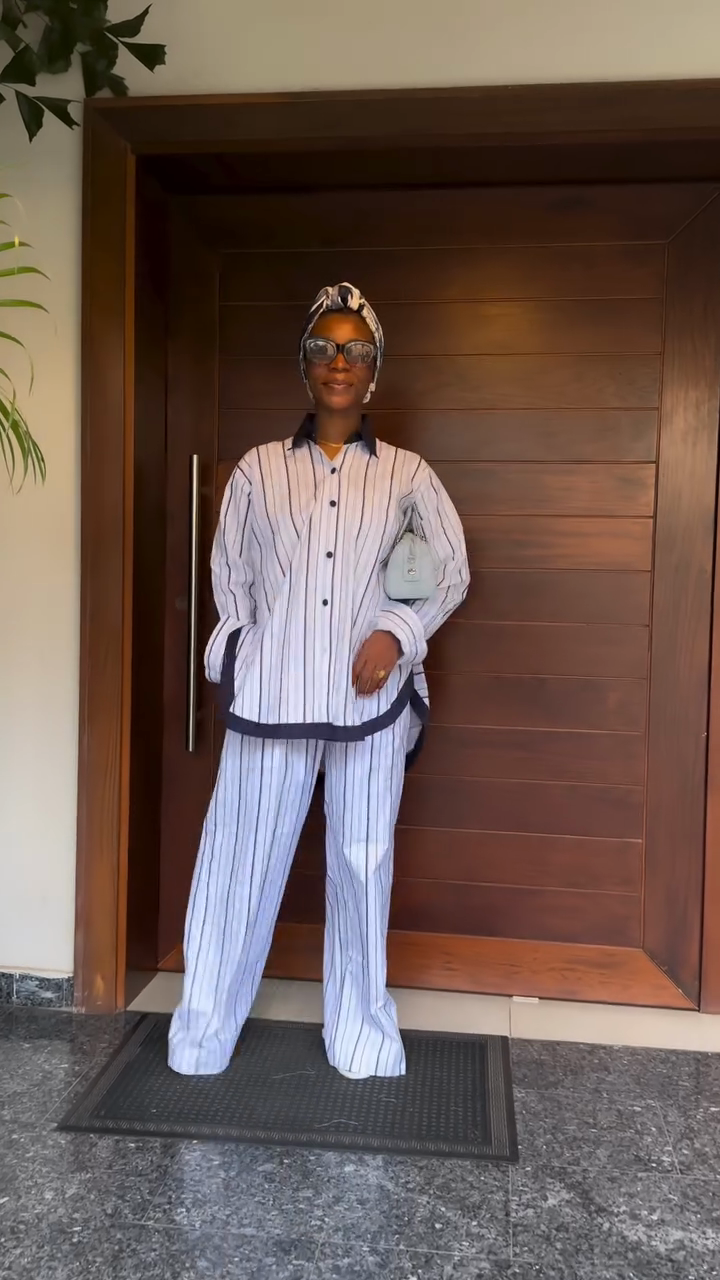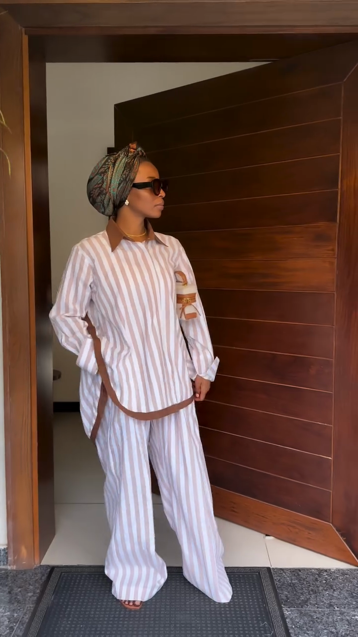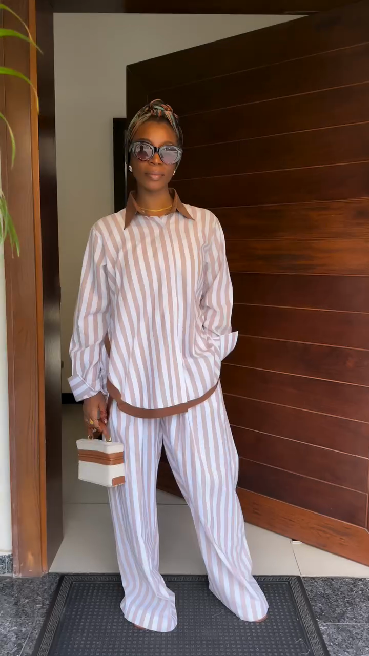 Off-white Striped Long-Sleeved Shirt and Wide-Leg Pants Set