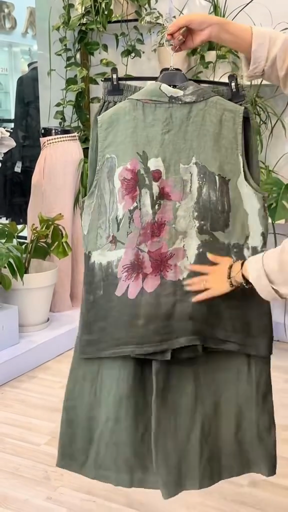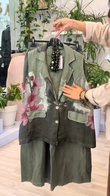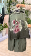 Olive Green Floral - Printed Vest and Shorts Set