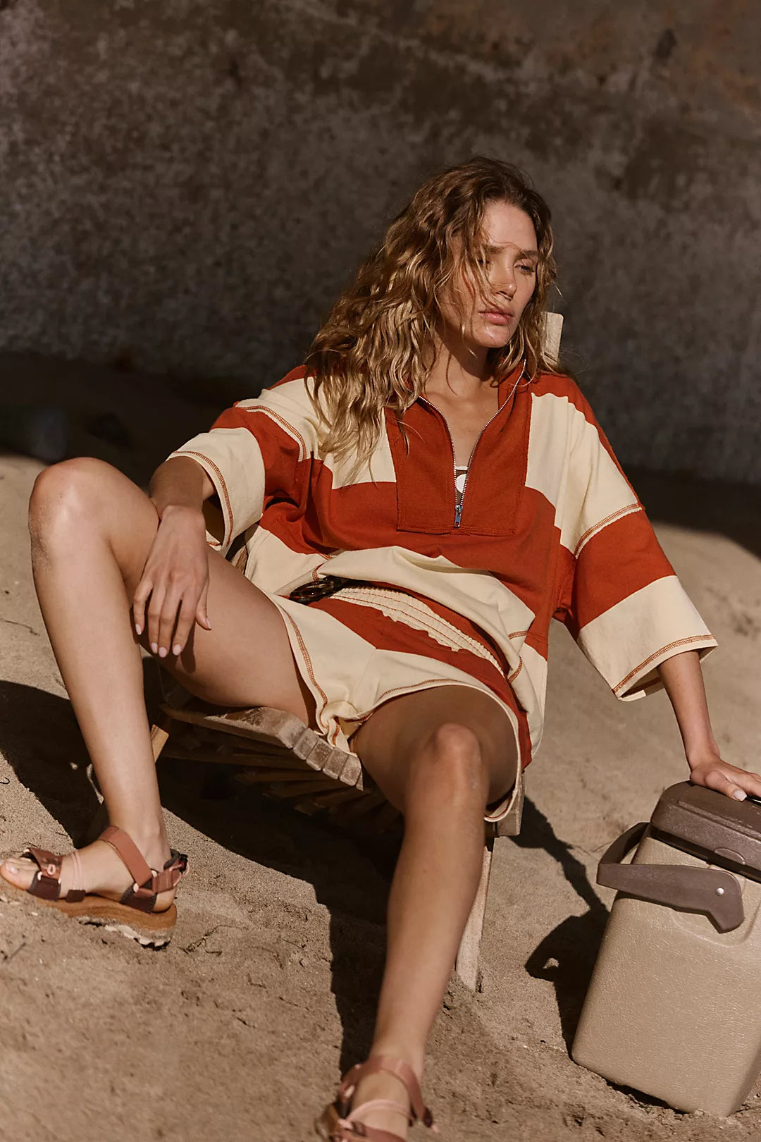 Orange & Pink Striped Half - Zip Loungewear Set