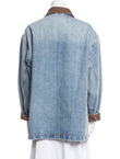 Oversized Light Wash Denim Jacket with Contrast Cuffs