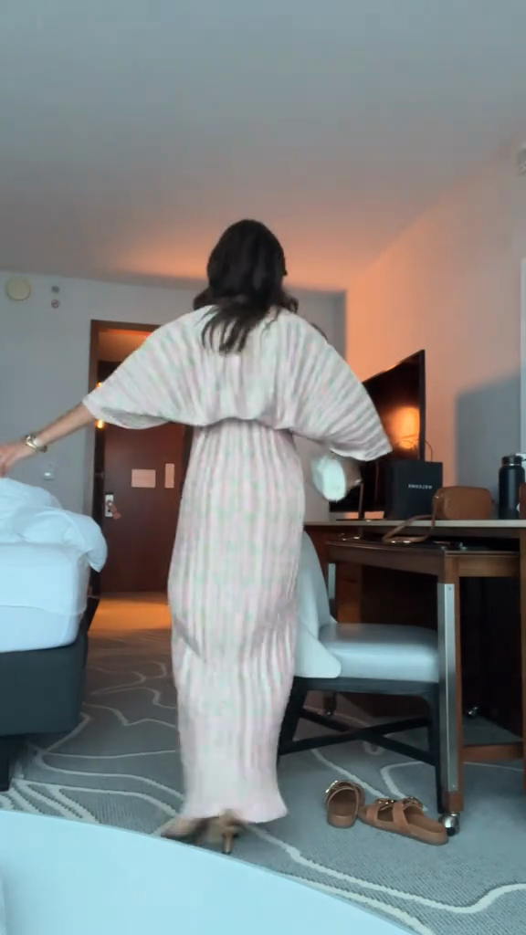 Pink and Green Striped Kaftan Dress