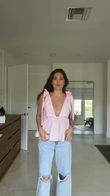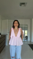 Pink Bow - Strap Peplum Top & Distressed Wide - Leg Jeans Set