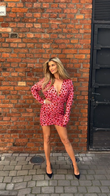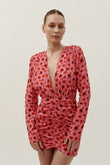 Pink Floral Print Ruched Mini Dress