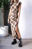 Elevate your wardrobe with this Plaid Draped Midi Dress. The unique draped design and side slit create a stylish, figure - flattering silhouette. Perfect for both casual and dressy occasions. Lightweight fabric ensures fast page load. Shop now for a chic, on - trend look!