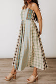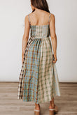 Plaid Patchwork Spaghetti Strap Midi Dress