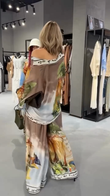 Printed Loose Shirt & Wide - Leg Pants Co - ord Set