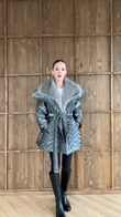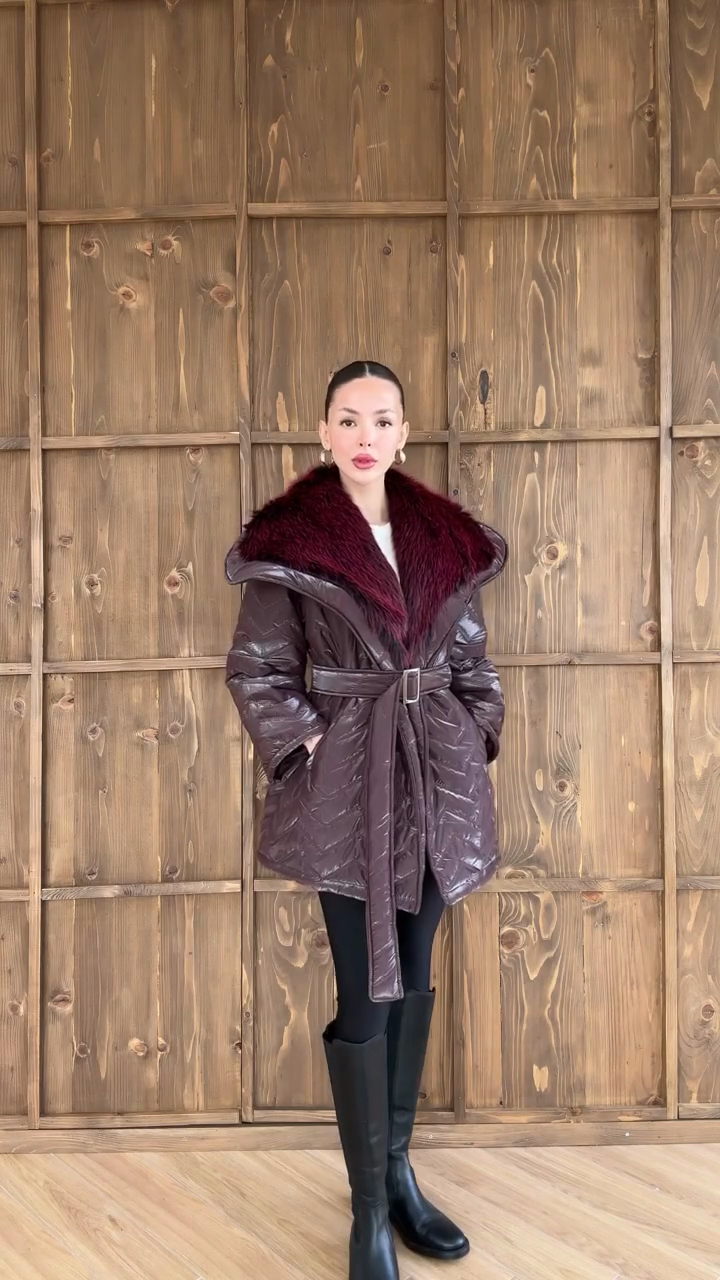 The quilted material provides warmth, ensuring warmth in cold weather. The belt can be customized to enhance the waistline, creating a balance of style and comfort.