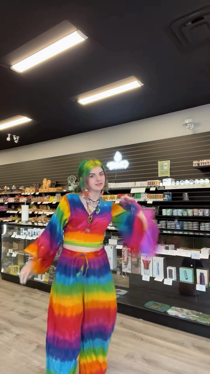 Rainbow Tie - Dye Bell - Sleeve Crop Top & Wide - Leg Pants Set