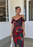 You can't miss this tie dye vantage dress. Made of lightweight chiffon fabric, embellished with an allover retro-inspired print, featuring a ruched neckline trimmed with draped sleeves and a ruched back, adjustable slender straps on the shoulders, a pullover styling, and a particular long length accented with a mermaid hem. Find more unique women’s vacation dresses or trendy clothing in our boutique, and complete a beautiful outing look with heeled sandals.