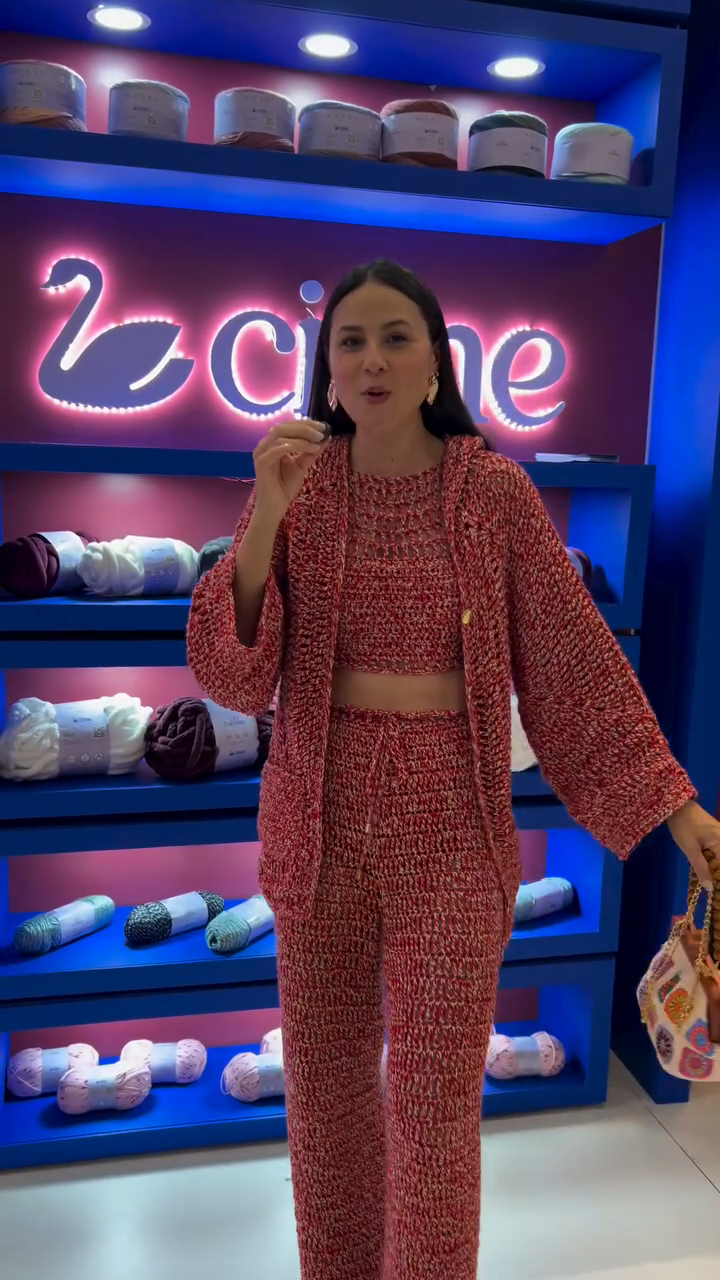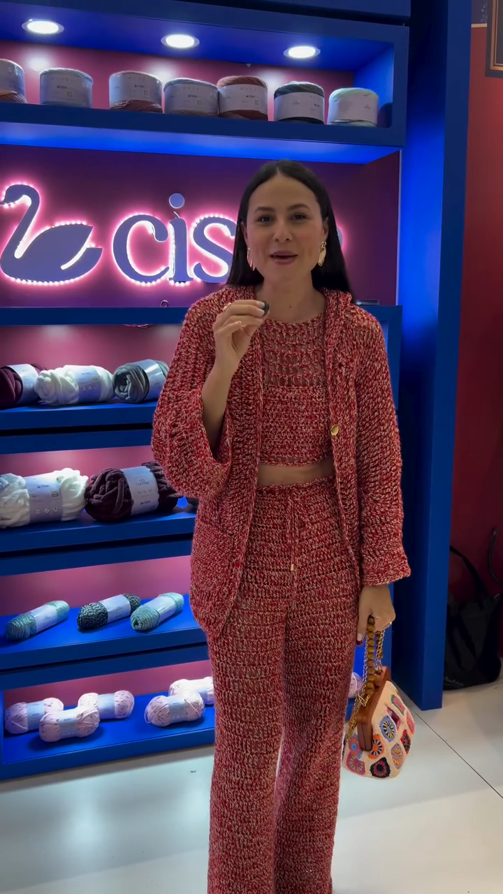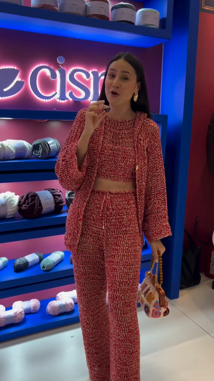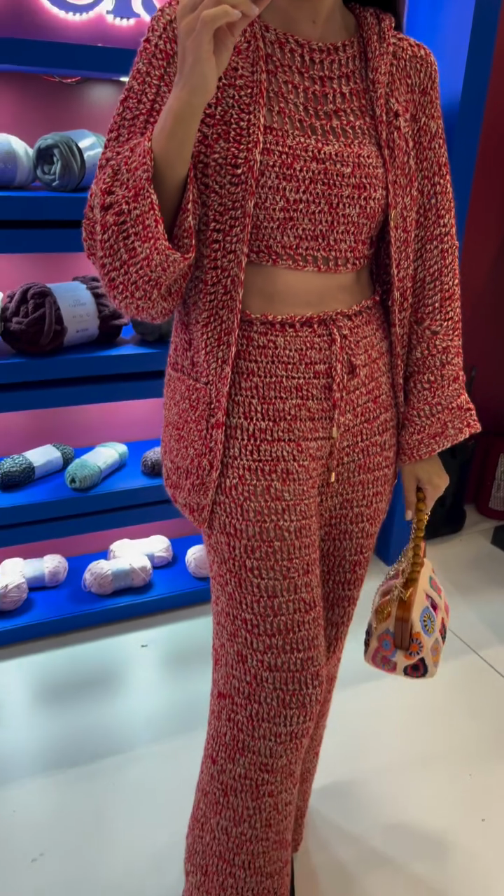 Red Crochet Crop Top and Wide Leg Pants Set