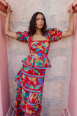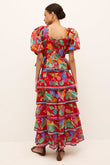 Red Floral - Print Tiered Dress