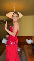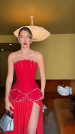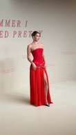 Red Strapless Embellished Gown