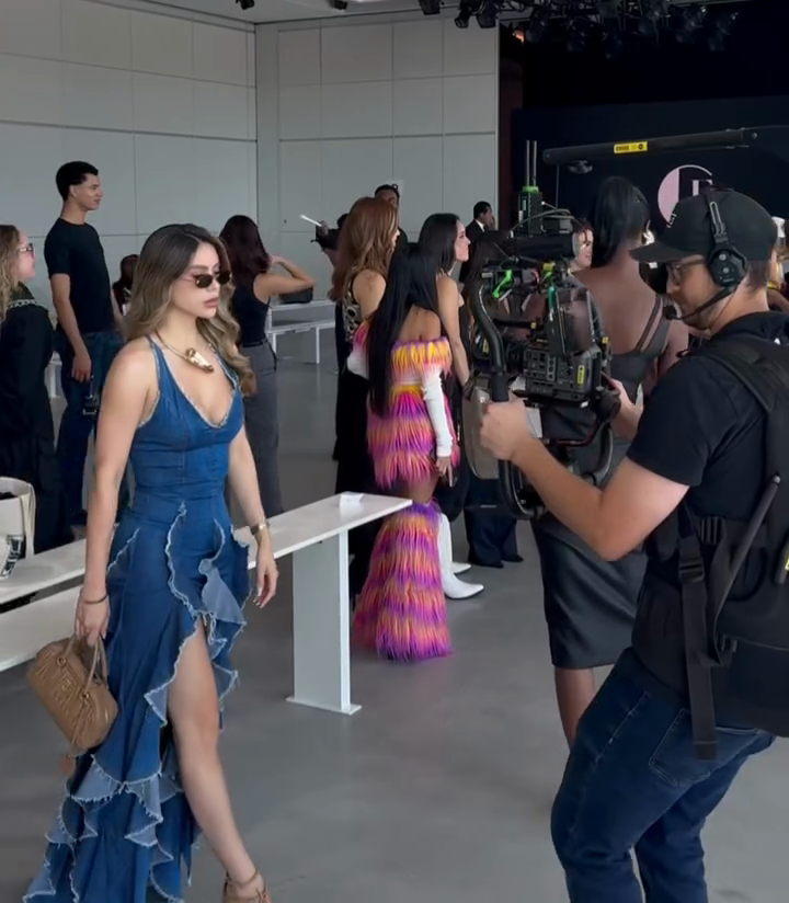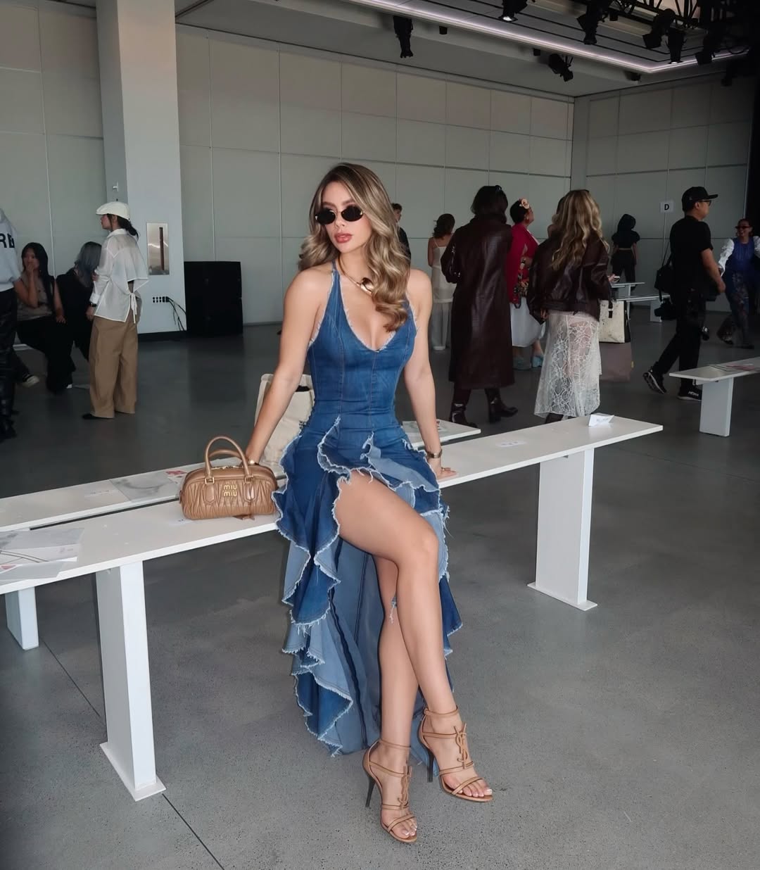 Ruffled Denim Maxi Dress