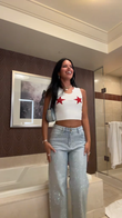 These light-wash jeans are embellished with countless small sequins, adding a playful, charming touch to this casual pair. Pair with a crop top for an even more playful and stylish look.