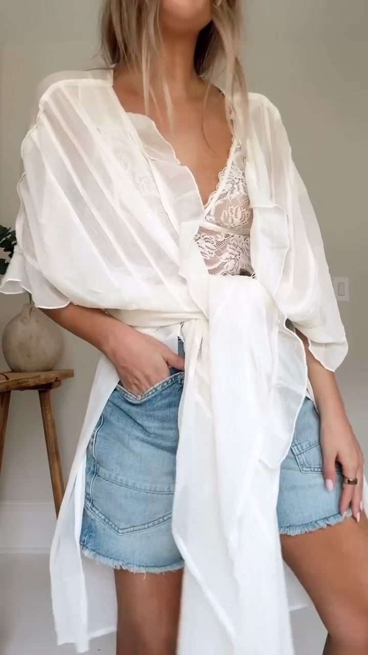 Sheer White Kimono Cover - Up Set
