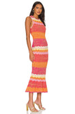 Sleeveless Chevron - Patterned Midi Dress