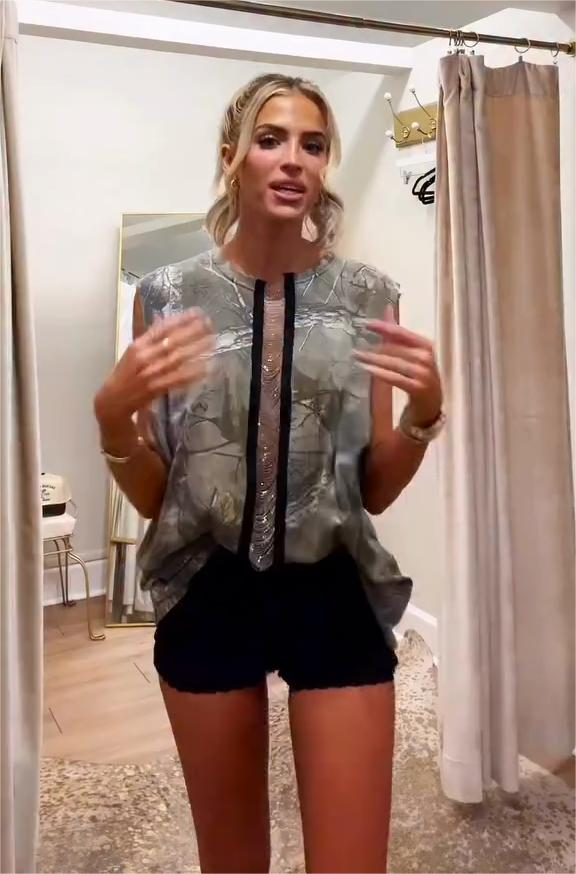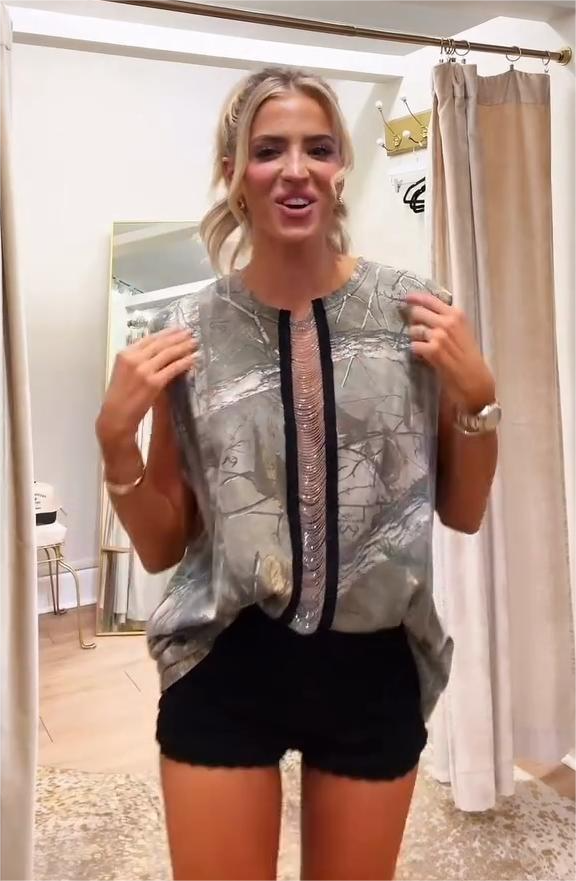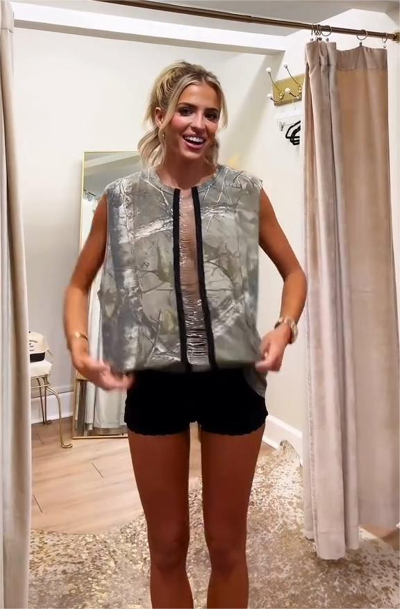 It's perfect for casual dinners, cocktail parties, or as a finishing touch for a night out. Pair it with simple black shorts for a balanced look that accentuates the top. Accessorize with minimal jewelry, like the model's bracelet and watch, for a stylish touch.