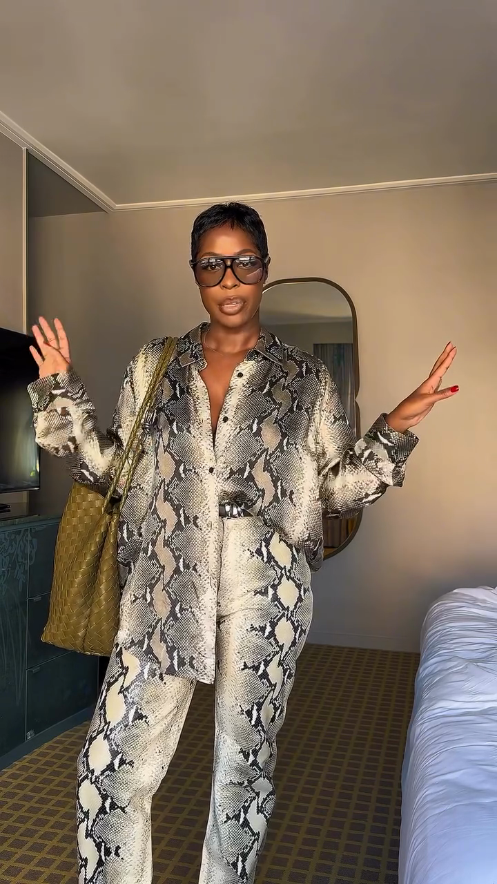 Snakeskin Print Satin Shirt and Pants Set