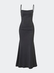 Square Neck Ruched Corset Fishtail Evening Maxi Dress