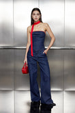 Strapless Lace Up Denim Set