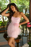 Strapless Mini Dress with Feather