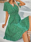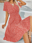 V-neck Polka Dot Crushed Flower Short Sleeve Dress