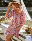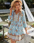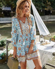 V-neck Printed Casual Bohemian Short Dress