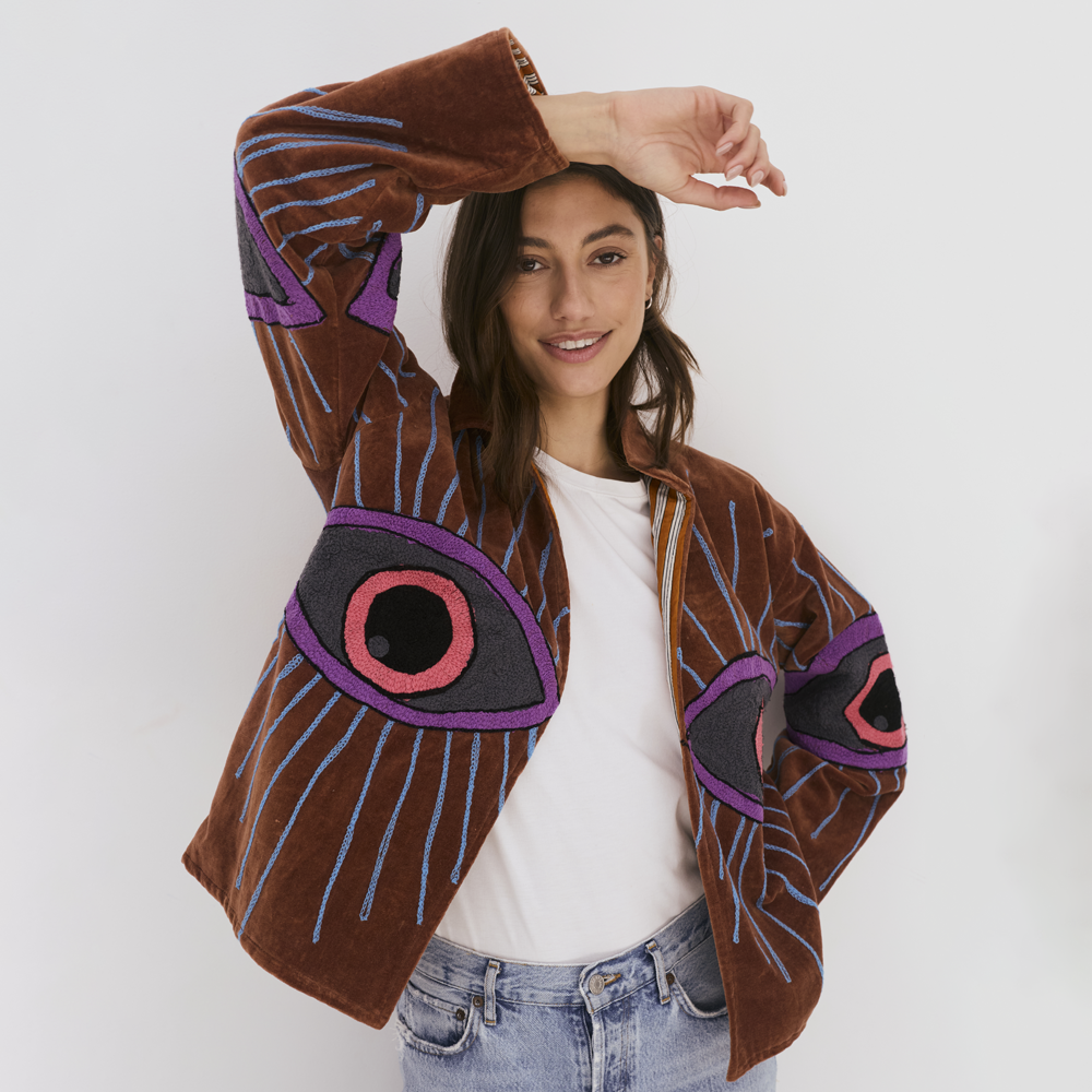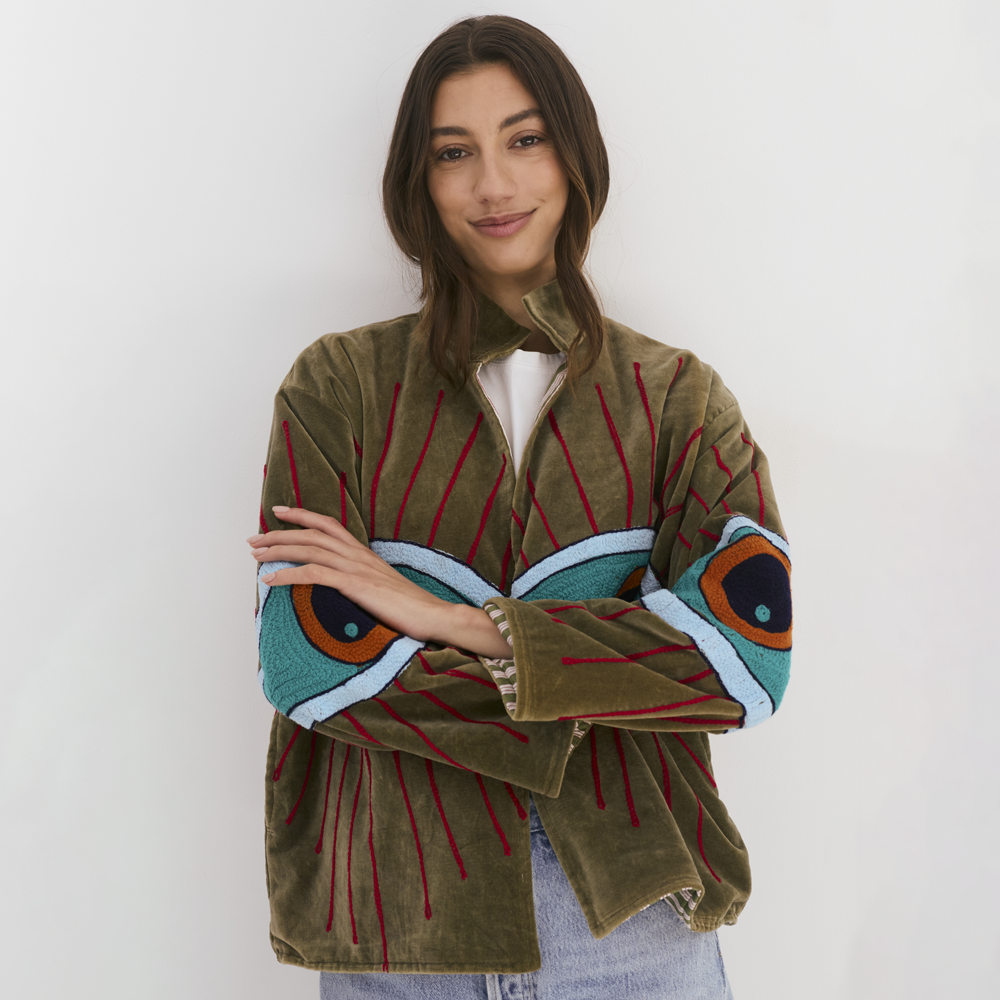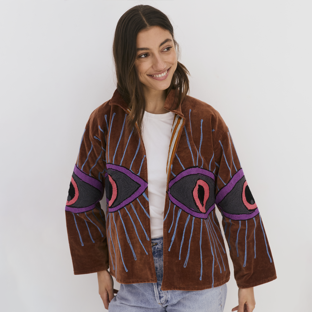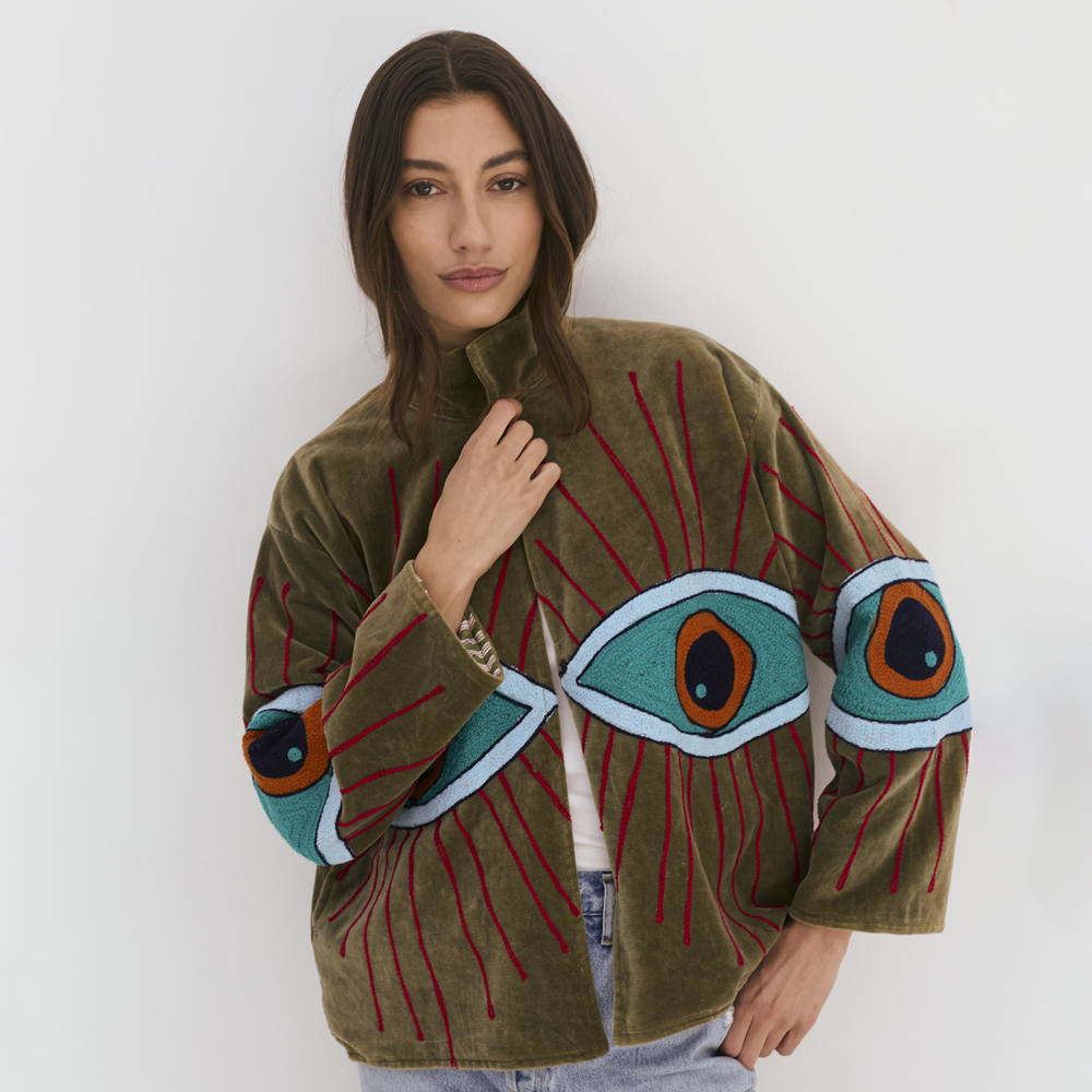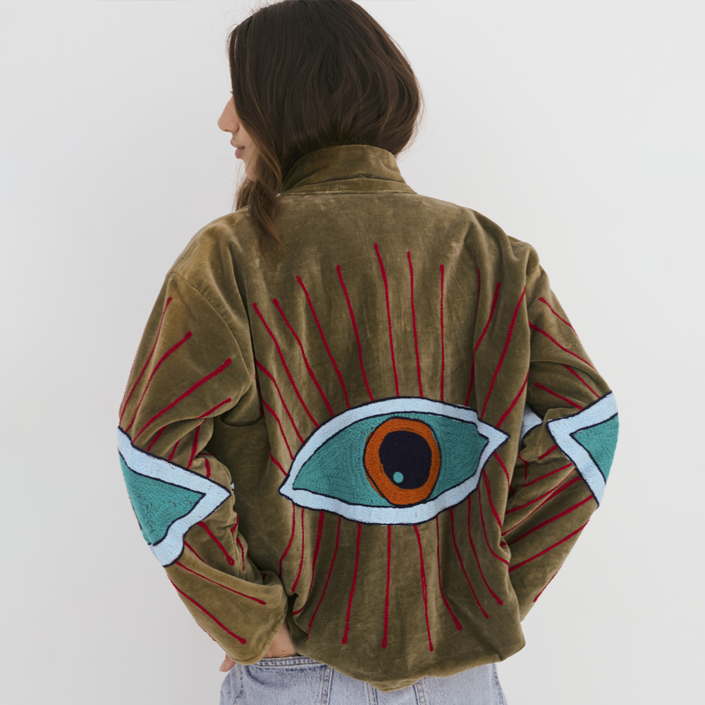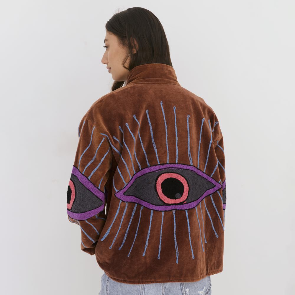 Velvet Jacket with Eye - Motif Embroidery