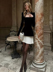 Elevate your evening style with this long-sleeved velvet pleated dress. Luxurious velvet fabric and elegant pleated skirt create a timeless silhouette, while the bold colorblock design adds a modern touch.
