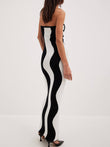 Stay stylish and comfortable in our unique Wave Stripe Contrast Bandeau Midi Dress.