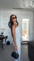White and Black Polka Dot Strapless Top and Wide - leg Pants Set