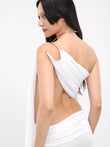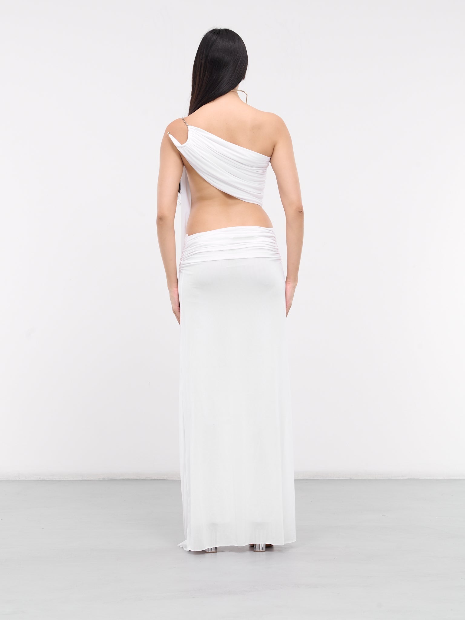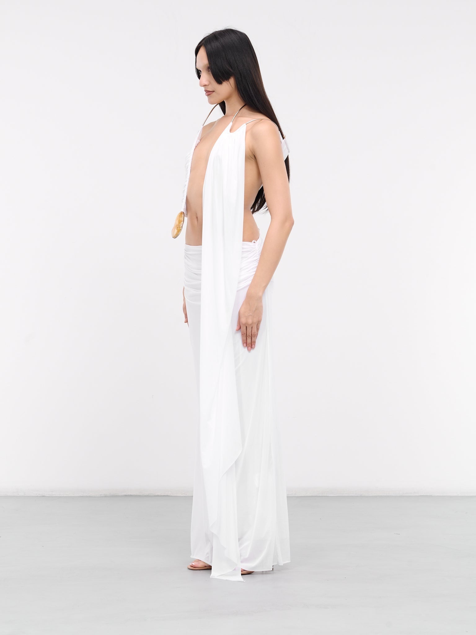 White Asymmetric Drape Halter Top & Maxi Skirt Set