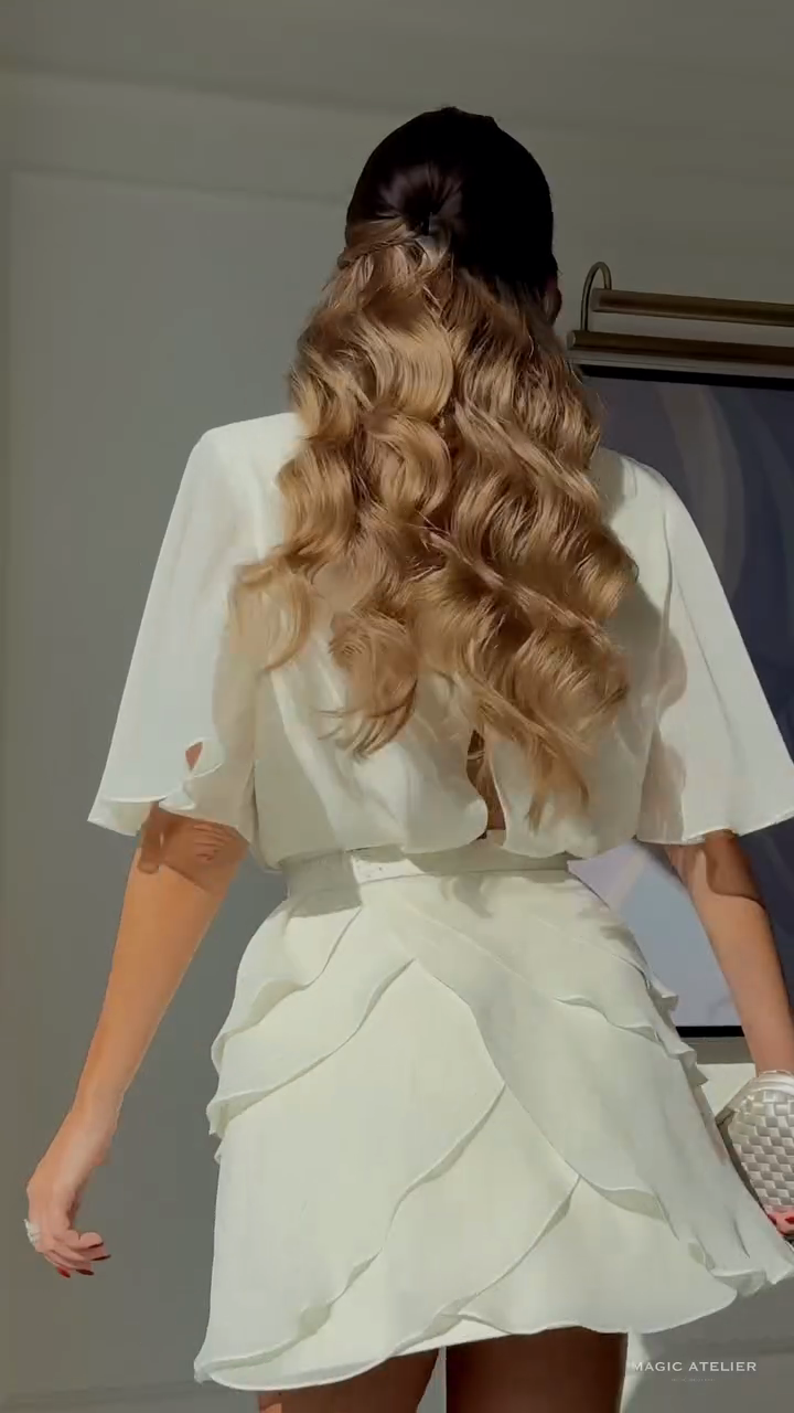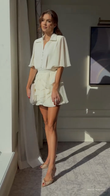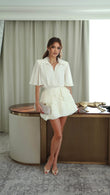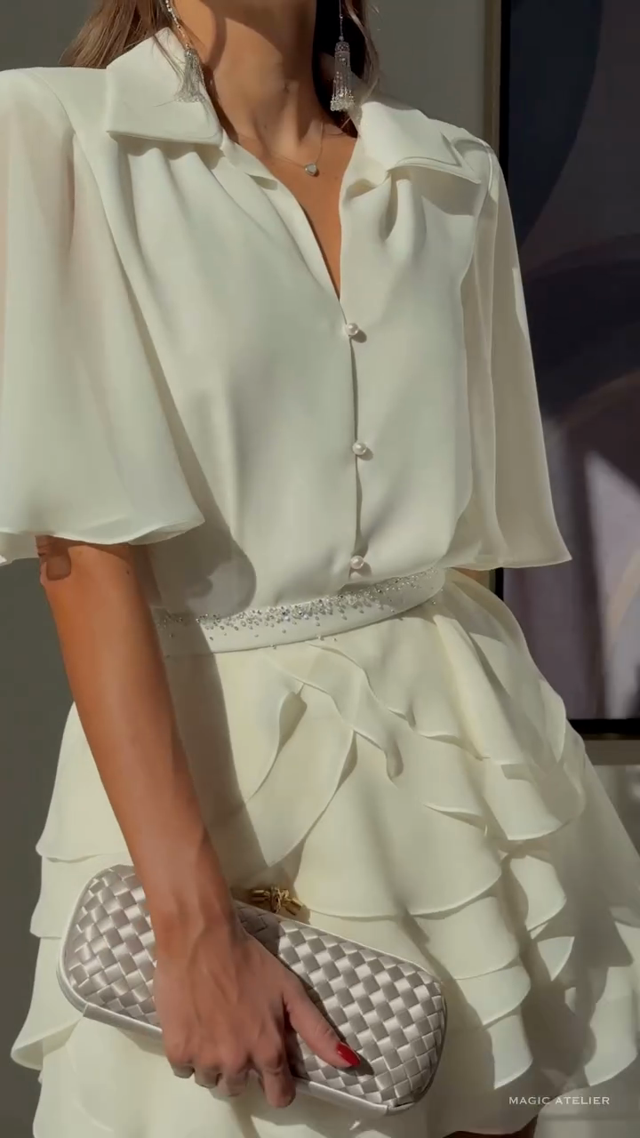 White Button - down Blouse with Ruffled Mini Skirt Set