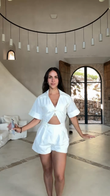 White Cutout Shirt and Shorts Set