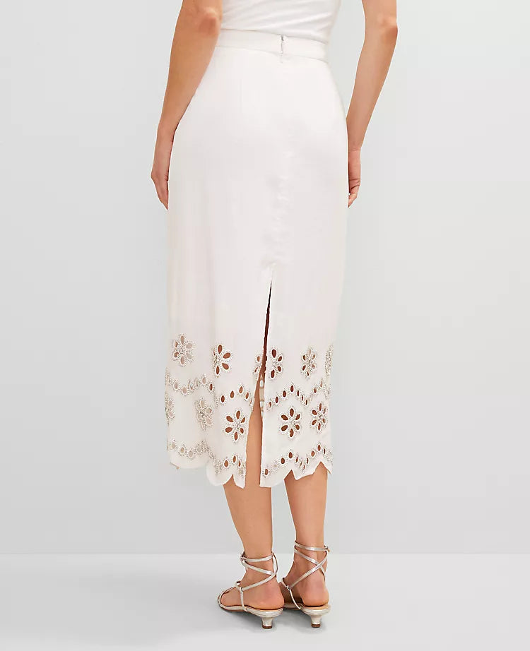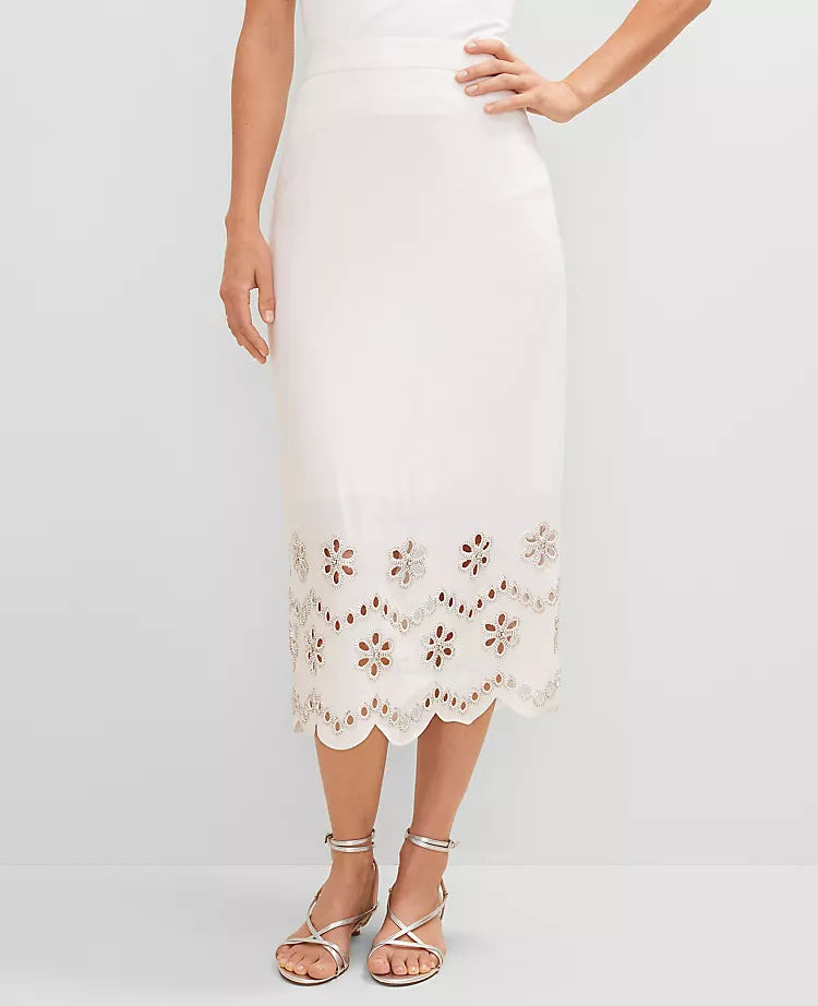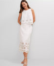 White Embroidered Crop Top & Midi Skirt Set