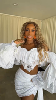 White Eyelet Off - Shoulder Crop Top & Skirt Set