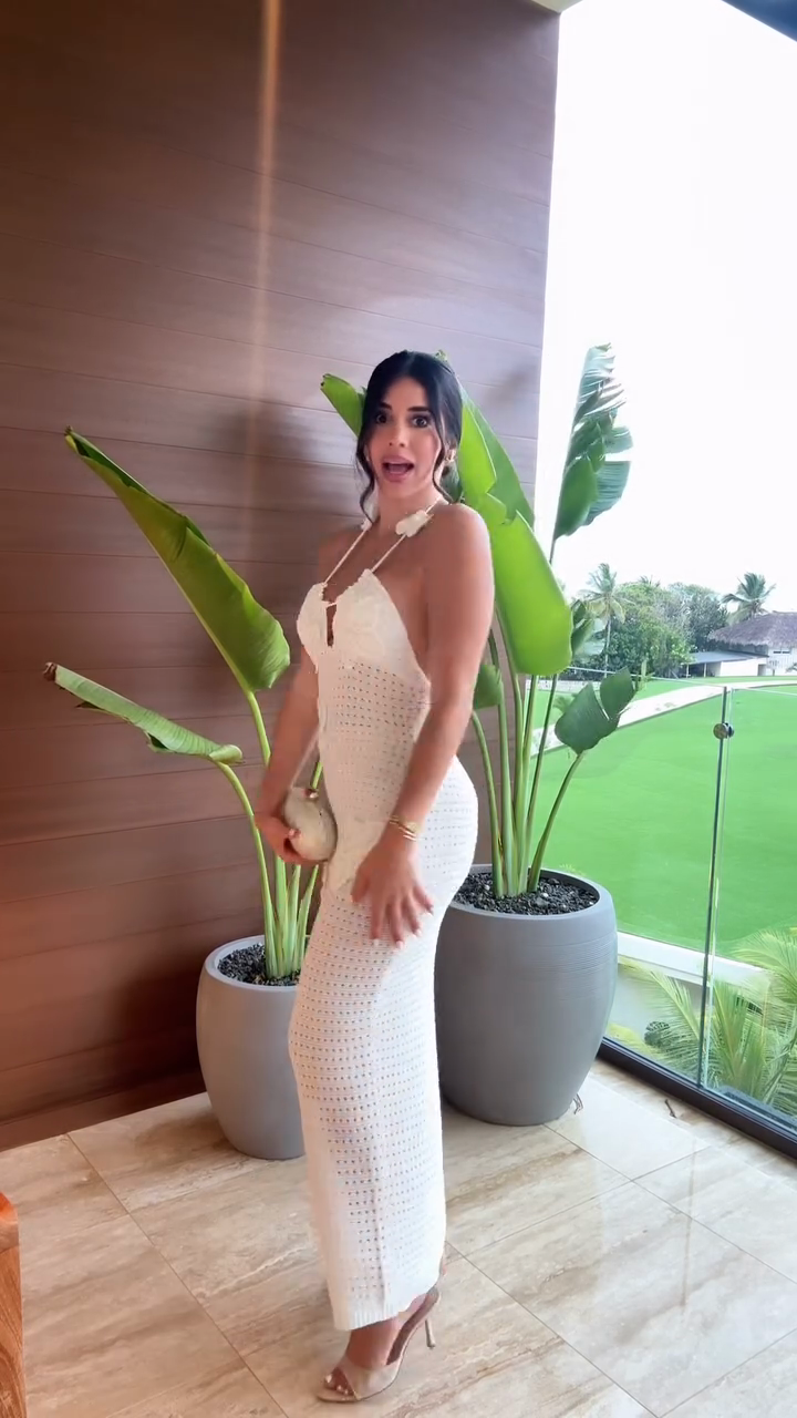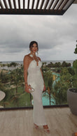 White Floral Crochet Halter Neck Maxi Dress