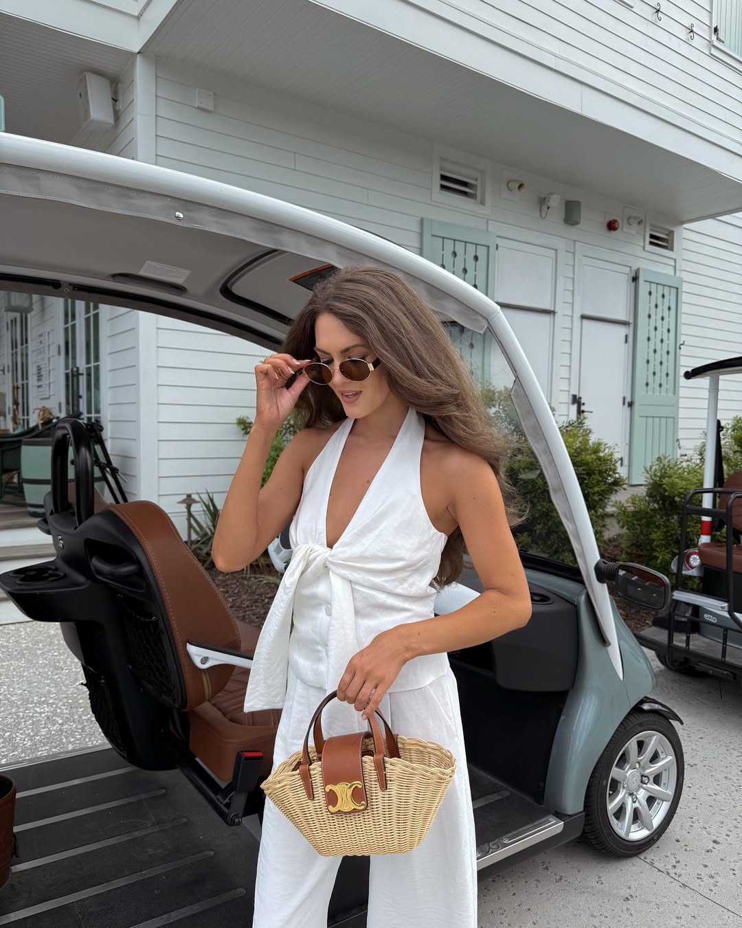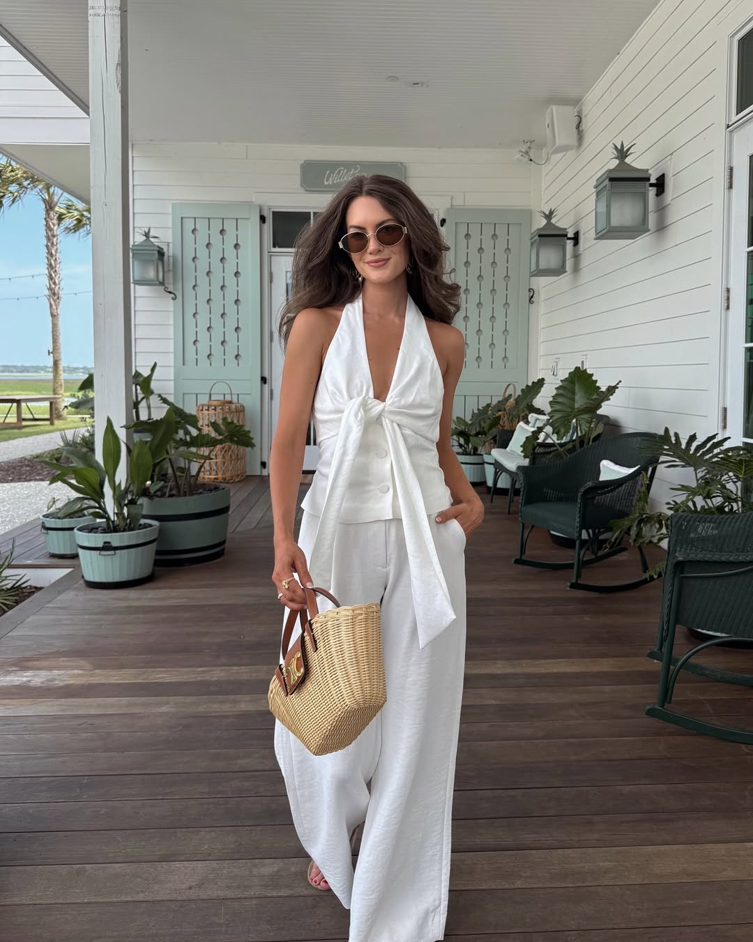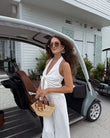 White Halter Neck Top & Wide - Leg Pants Set