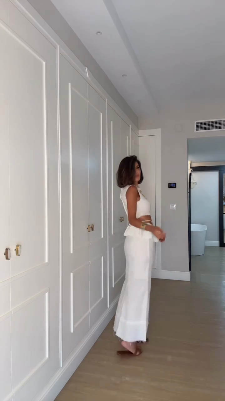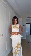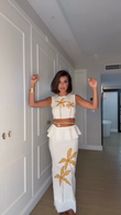 White Palm Tree Embroidered Cropped Top and Midi Skirt Set