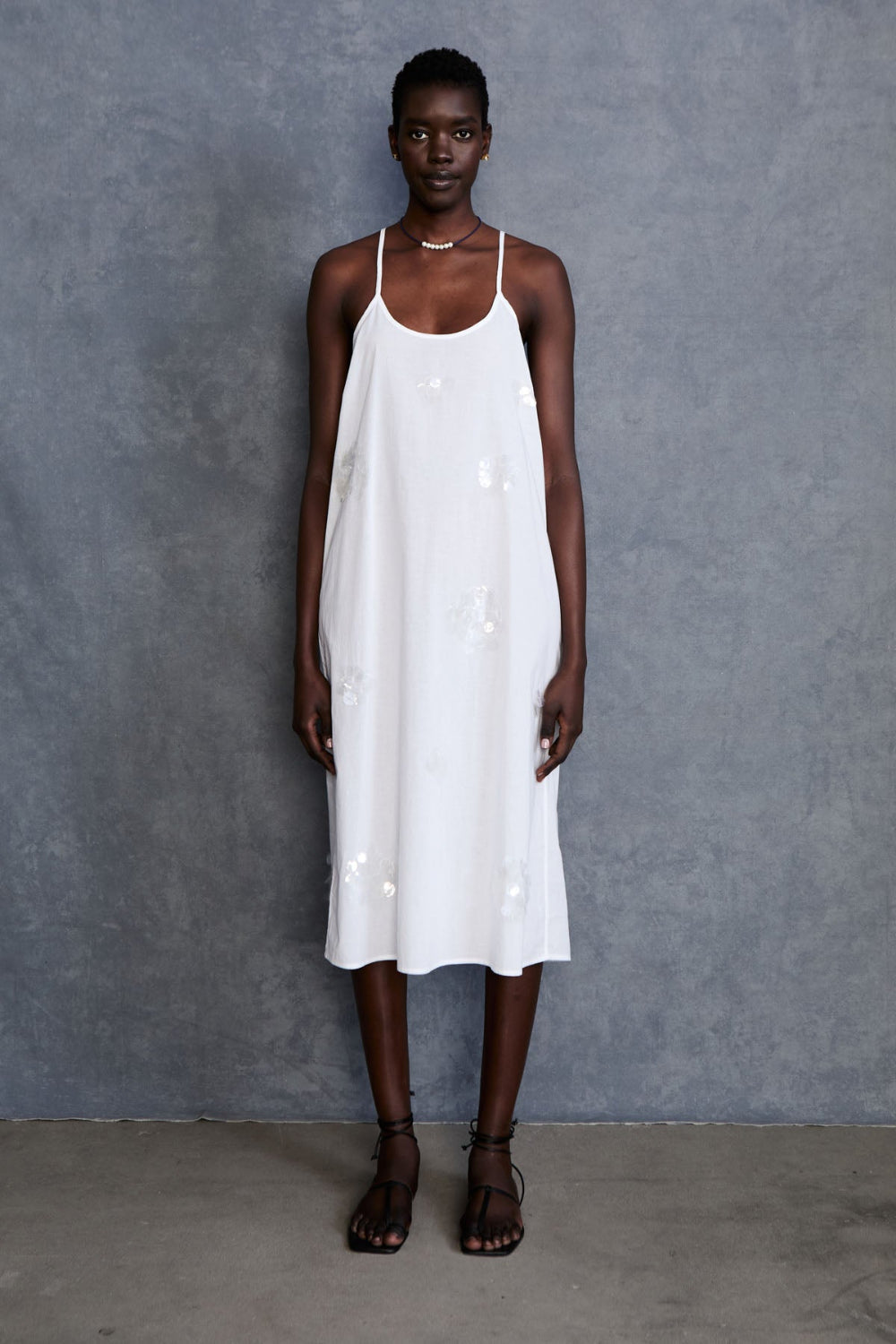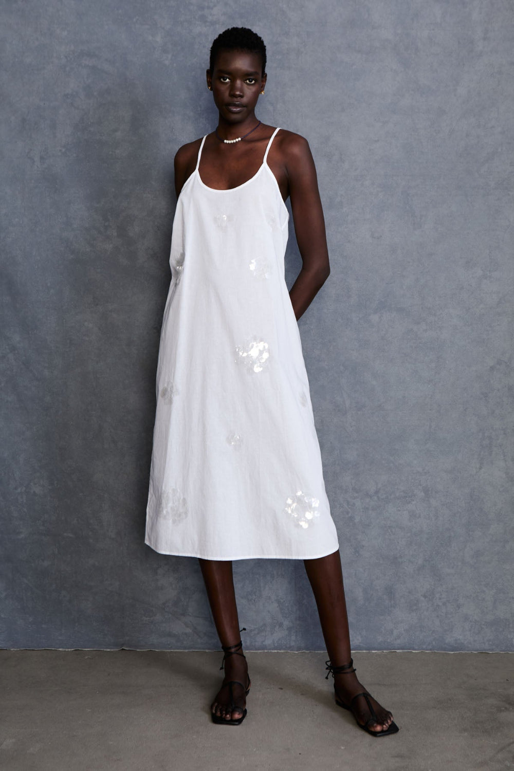 White Sequin - Embellished Slip Dress