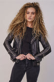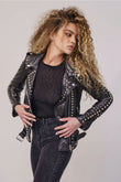 Women Black Style Silver Spiked Studded Leather Biker jacket