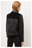 Women Black style Silver Spiked Studded Leather Biker Jacket