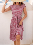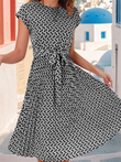 Women's Short Sleeve Patterned Midi Dress with Waist Tie