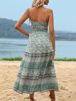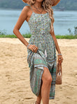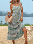 Women's Sleeveless Boho Floral Midi Dress with Spaghetti Straps