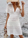 Women's V-Neck Short Sleeve Beach Dress Coverup in 3 Colors S-XL
